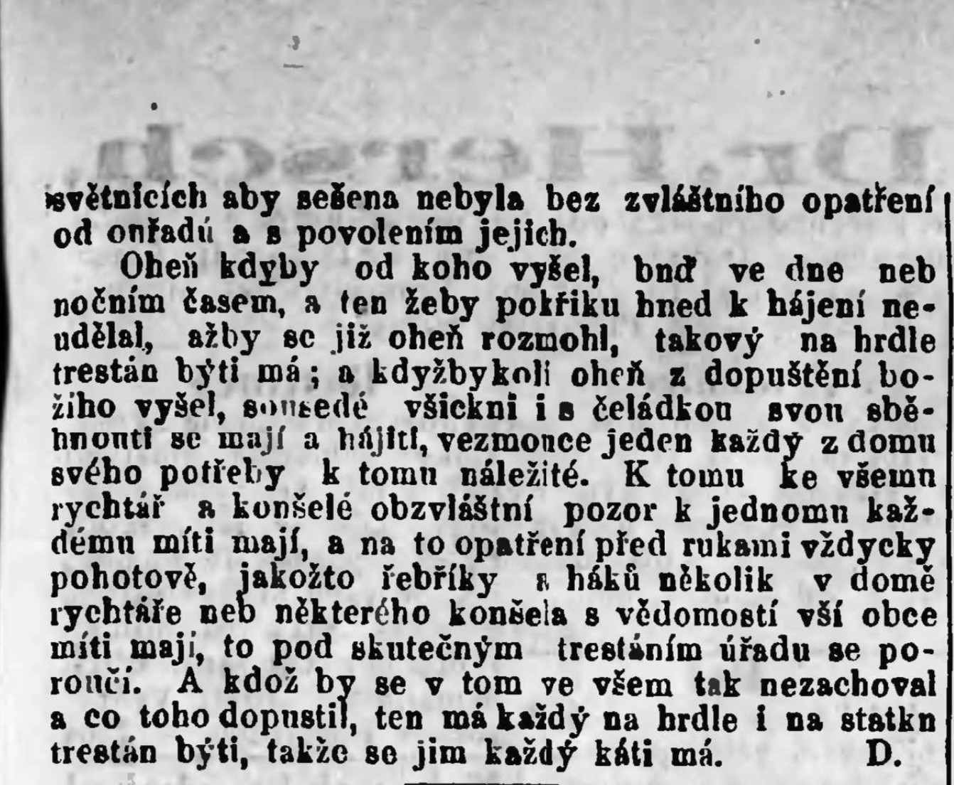 Řád stanovil tvrdé sankce pro každého, kdo by pravidla porušil. Pokud by někdo způsobil požár svou neopatrností, měl být potrestán “na hrdle”, což v tehdejší terminologii znamenalo smrt nebo jiný těžký trest. Tento přísný přístup měl odradit poddané od rizikového chování a zajistit bezpečnost celé obce.